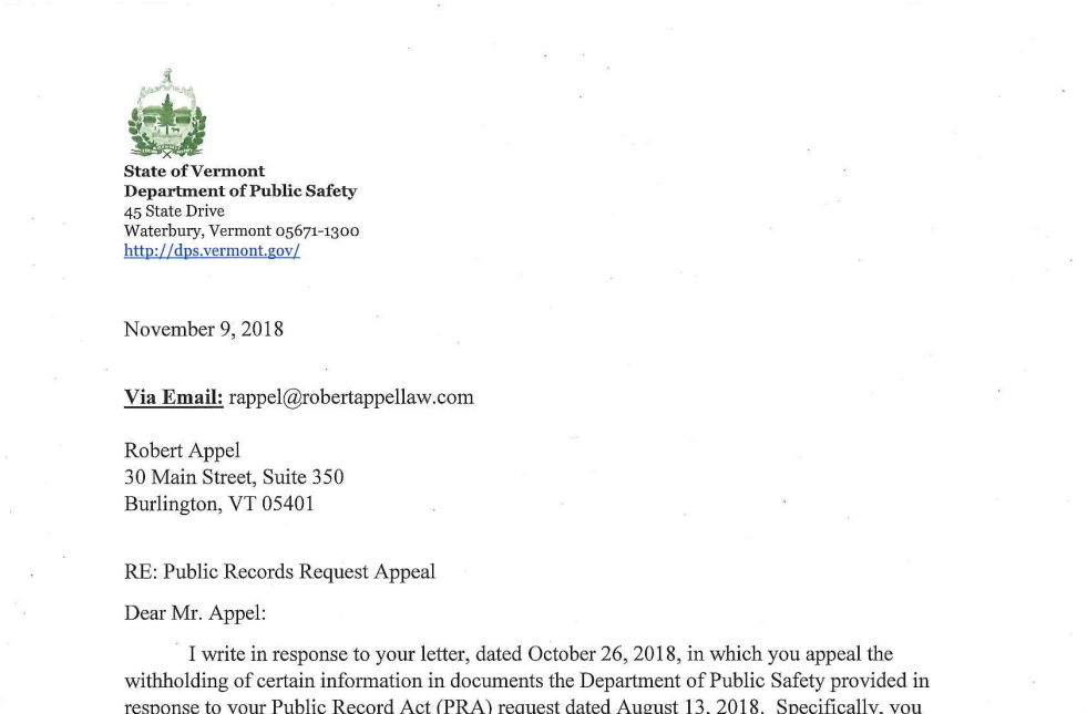 filing a lawsuit. Sadly in Vermont the Public Records Law is only enforced by